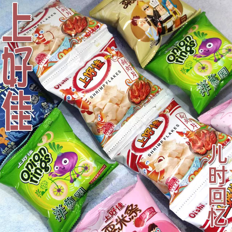 8090后怀旧童年上好佳虾片虾条薯片洋葱圈栗米条小卖部连串小零食