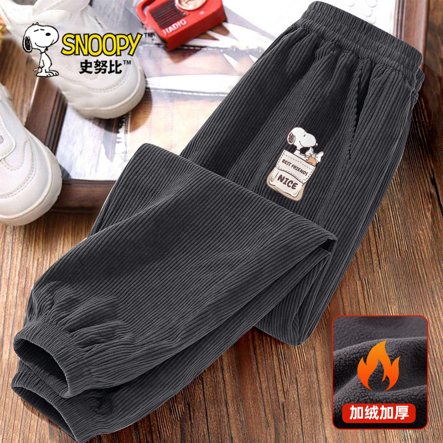 史努比男童加绒裤子灯芯绒2025新款男孩一体绒裤儿童薄绒运动裤厚