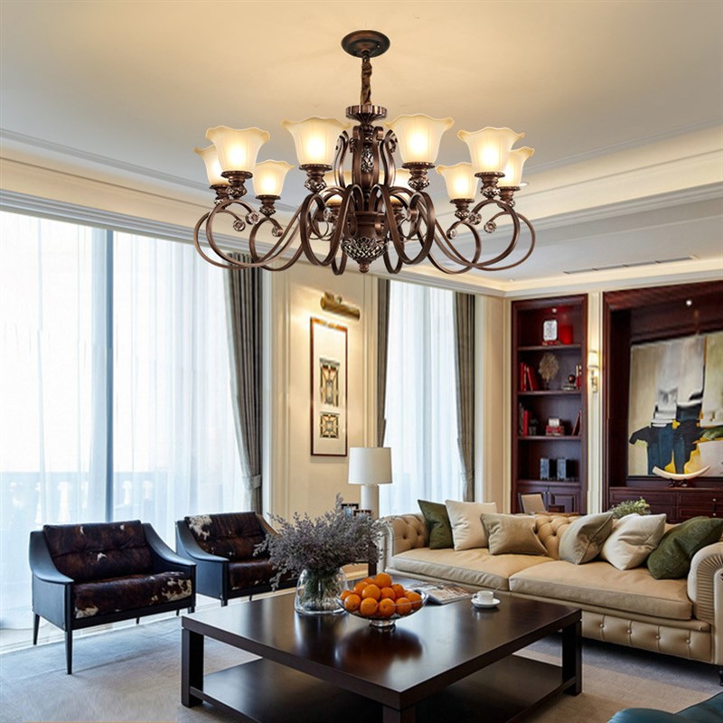美式吊灯客厅主灯欧式铁艺复古田园乡村别墅大厅复式楼梯餐厅灯具