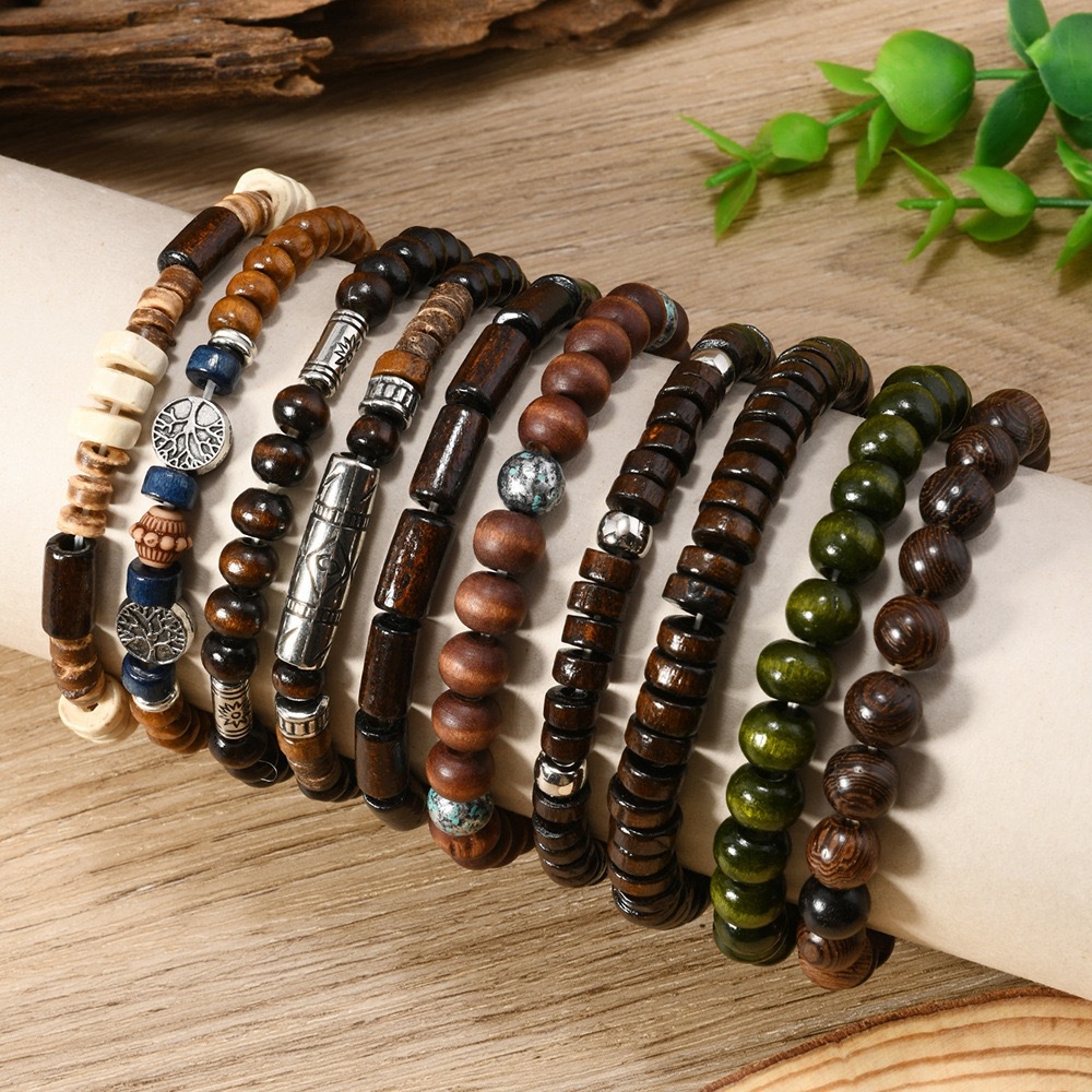 波西米亚风椰壳木珠男士手链