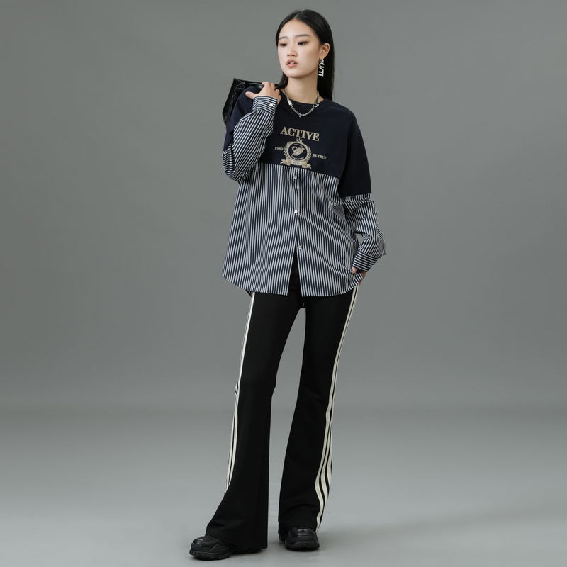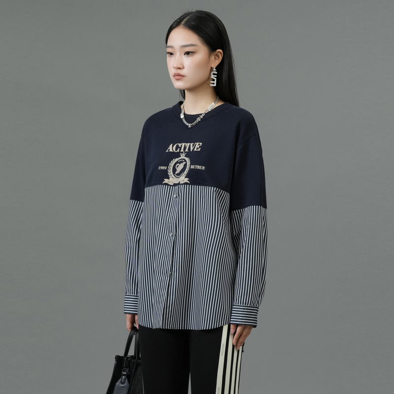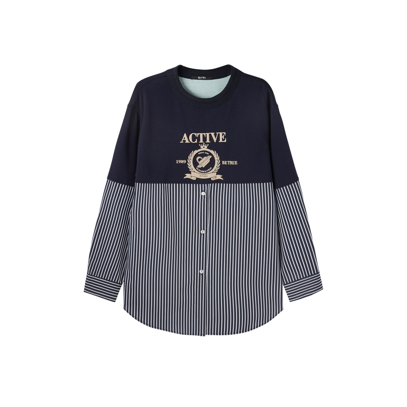 U/TI学院风衬衫拼接卫衣女装设计感休闲圆领上衣尤缇2025春季新款