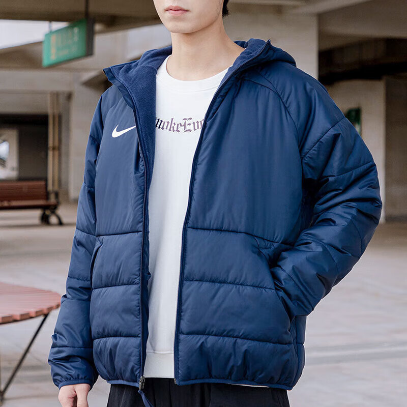 蓝色棉服男Nike耐克冬季厚款防风运动外套保暖连帽休闲上衣DJ6311