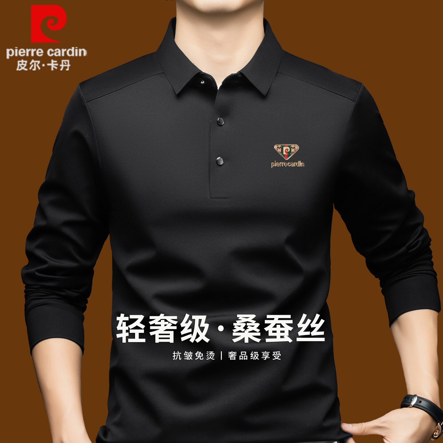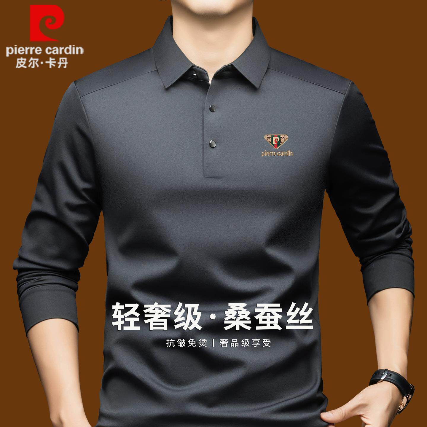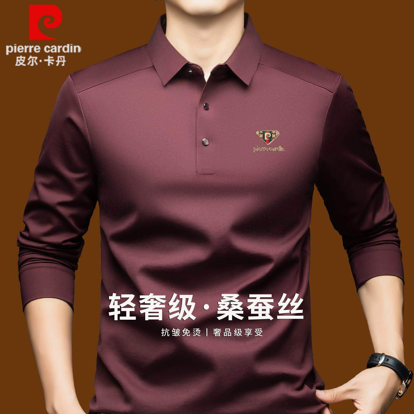 皮尔卡丹正品高端桑蚕丝长袖t恤男士秋季商务休闲上衣翻领polo衫