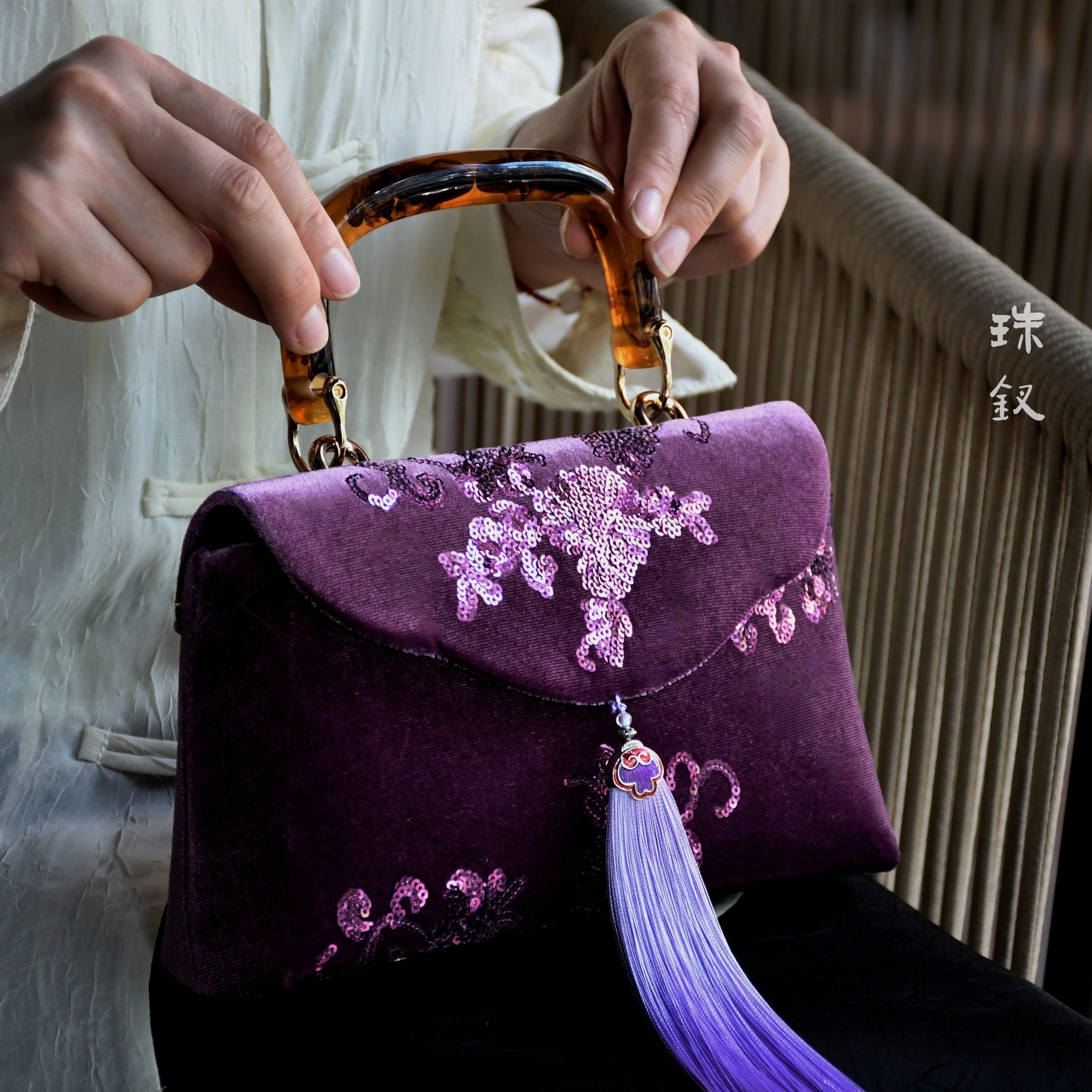 花瓣翻盖包-宋锦锦缎真丝非遗原创新中式手工包DIY材料包口金包