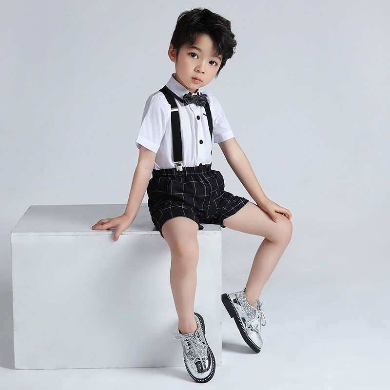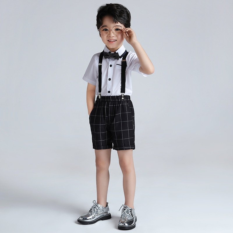 儿童礼服夏季新款男童六一主持合唱演出服韩版帅气短袖背带裤套装
