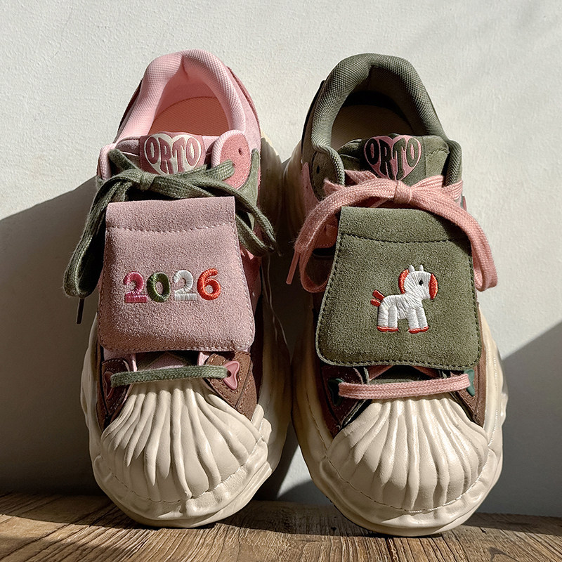 2026马年贺岁鸳鸯鞋情侣款隐形增高7CM休闲百搭男女贝壳头板鞋潮