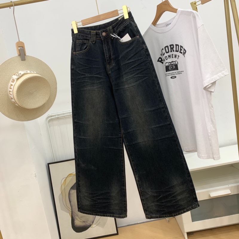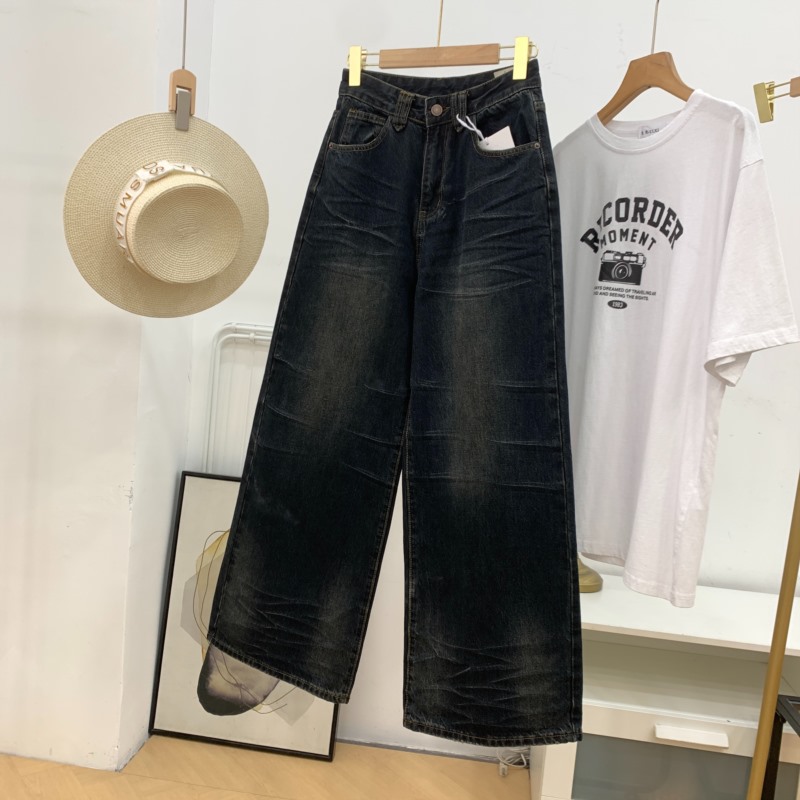 复古宽松直筒阔腿裤女春夏2025新款韩版洋气显瘦牛仔裤D#27