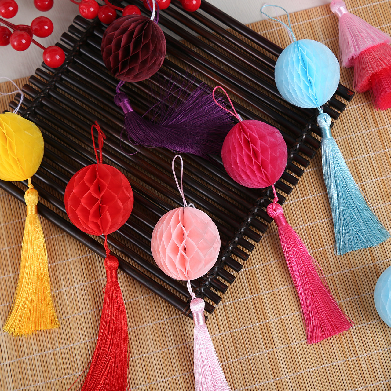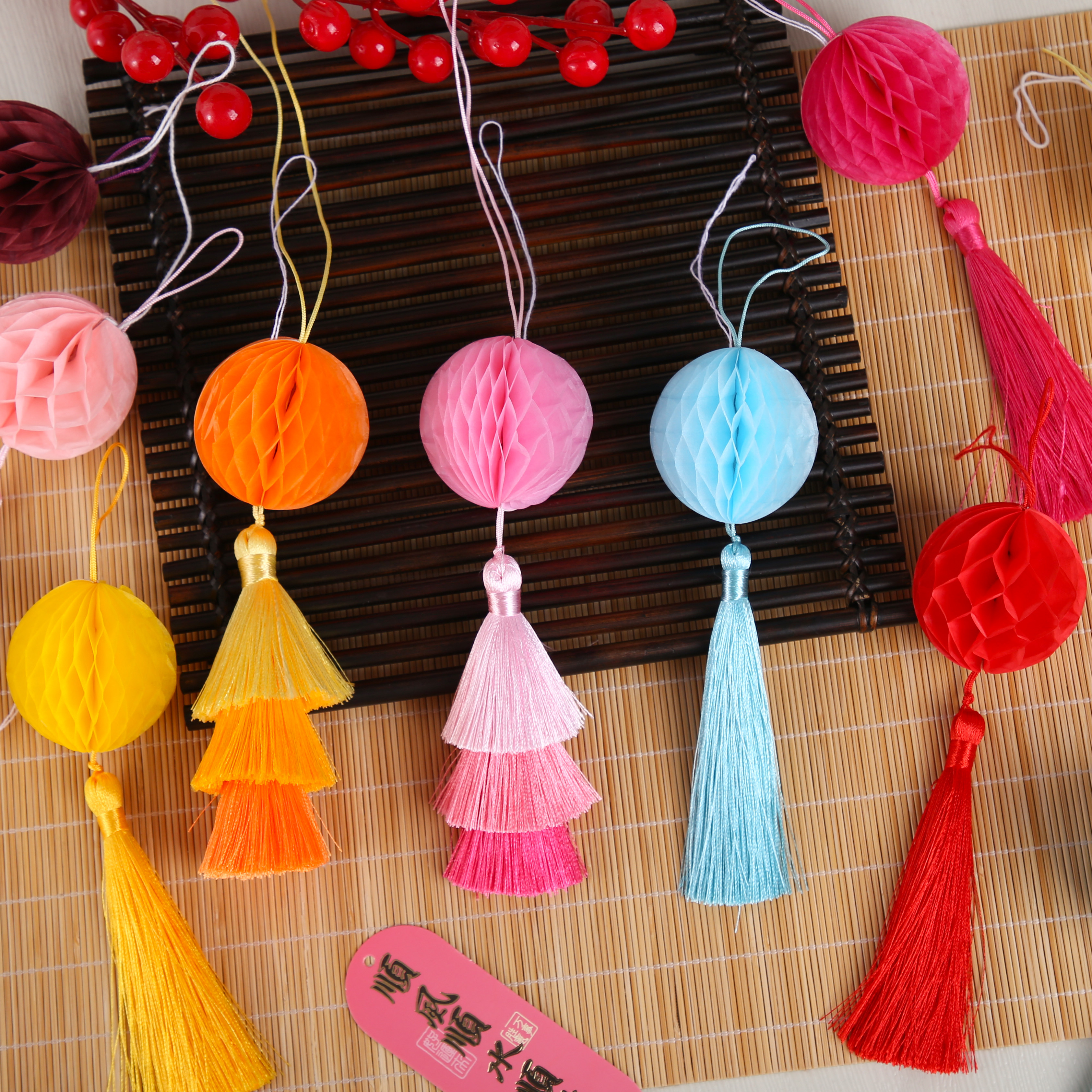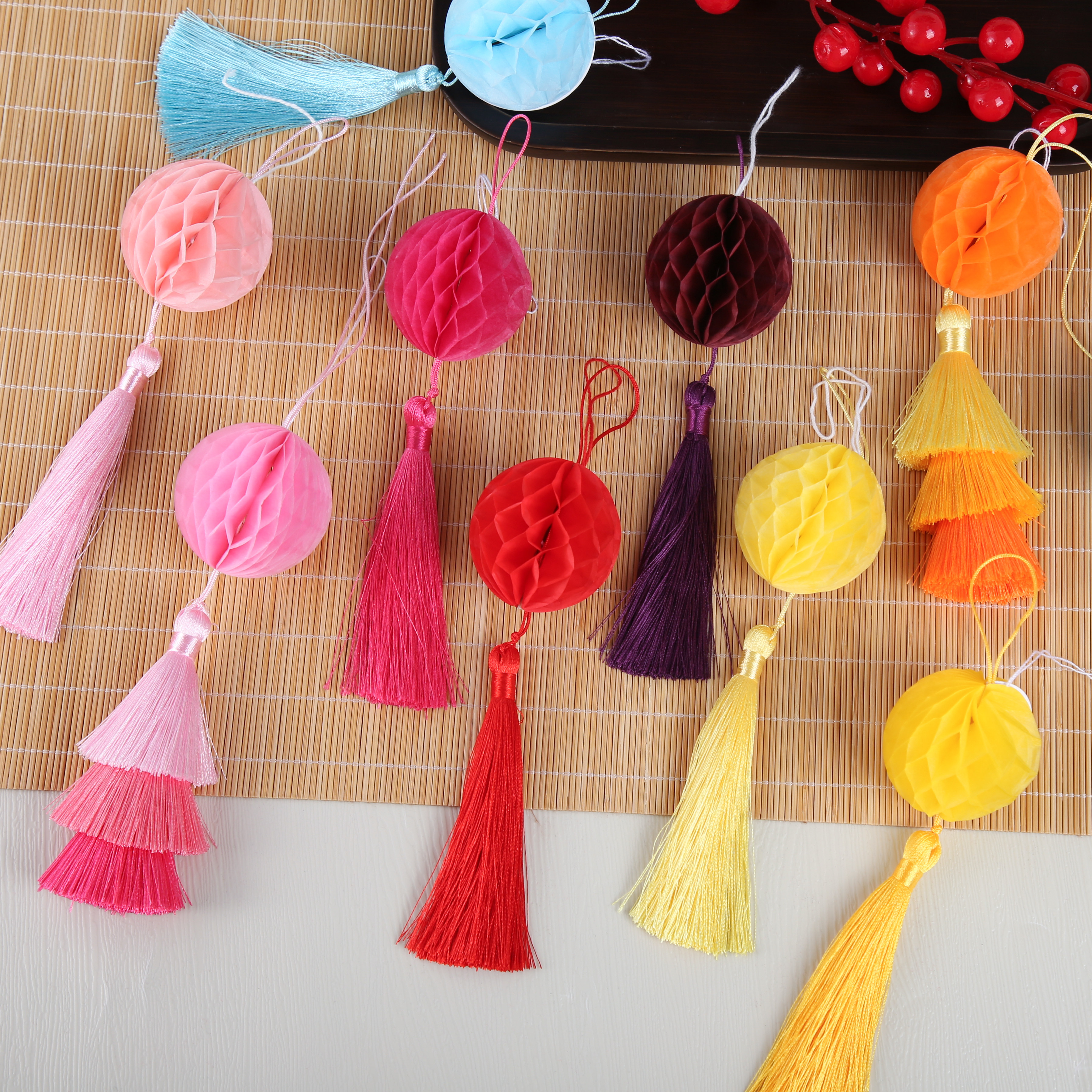 2026新年小灯笼挂饰彩色蜂窝年宵花福桶挂件装饰手工diy材料配件