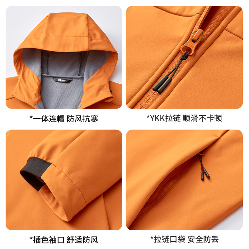 冬季户外软壳冲锋衣男女款防风跑步外套登山骑行运动保暖连帽夹克