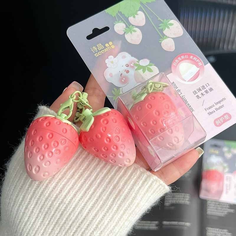 可爱草莓温感变色润唇膏滋润保湿补水改善唇纹口红打底迷你小挂件