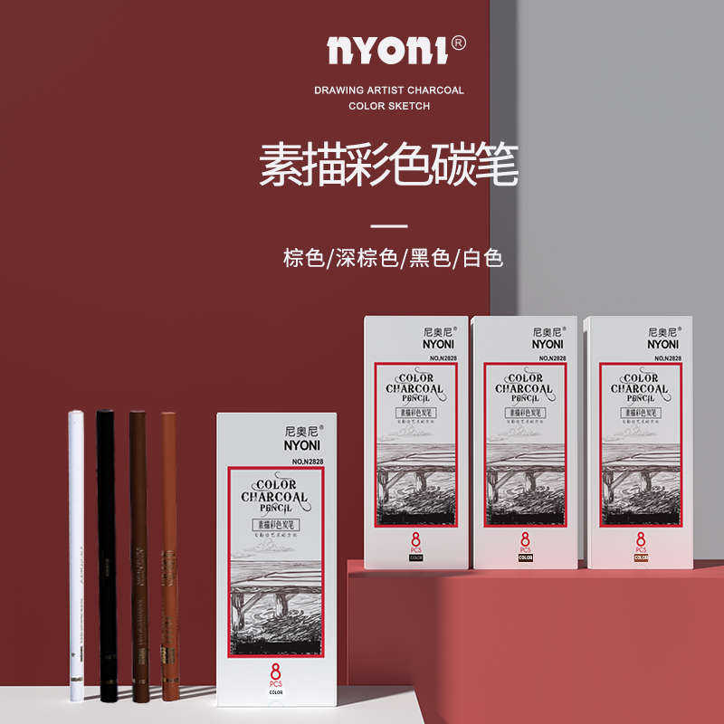 尼奥尼彩色炭笔 白色黑色棕色咖色炭笔正品套装素描碳笔美术生专用性绘画铅笔用品