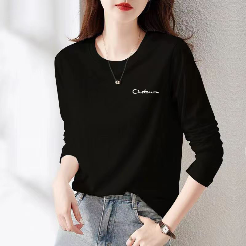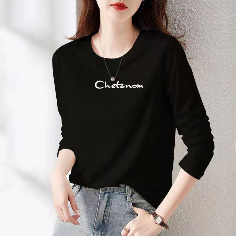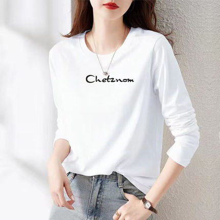 品牌纯棉白色长袖t恤女2024