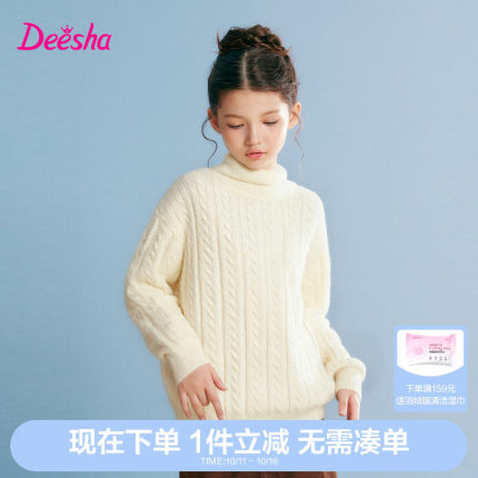 笛莎官方童装女童仿貂绒针织衫冬季新款大童女孩儿童洋气毛衣毛衫