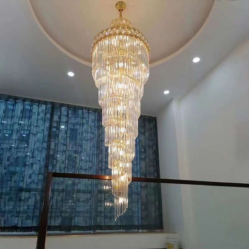 水晶吊灯复式楼大吊灯别墅挑高旋转楼梯酒店大堂大厅豪华工程灯具