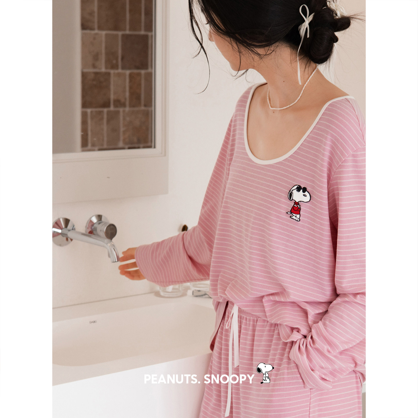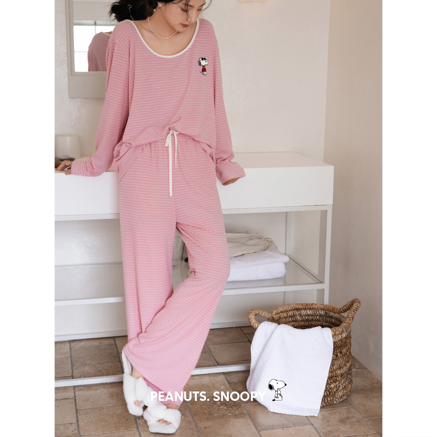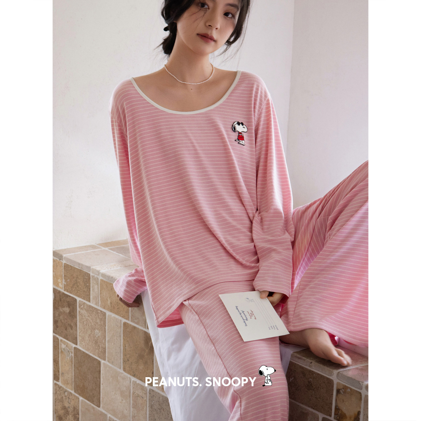 软糯睡衣套装女春秋新款宽松长袖长裤针织棉圆领家居服贝妍史努比