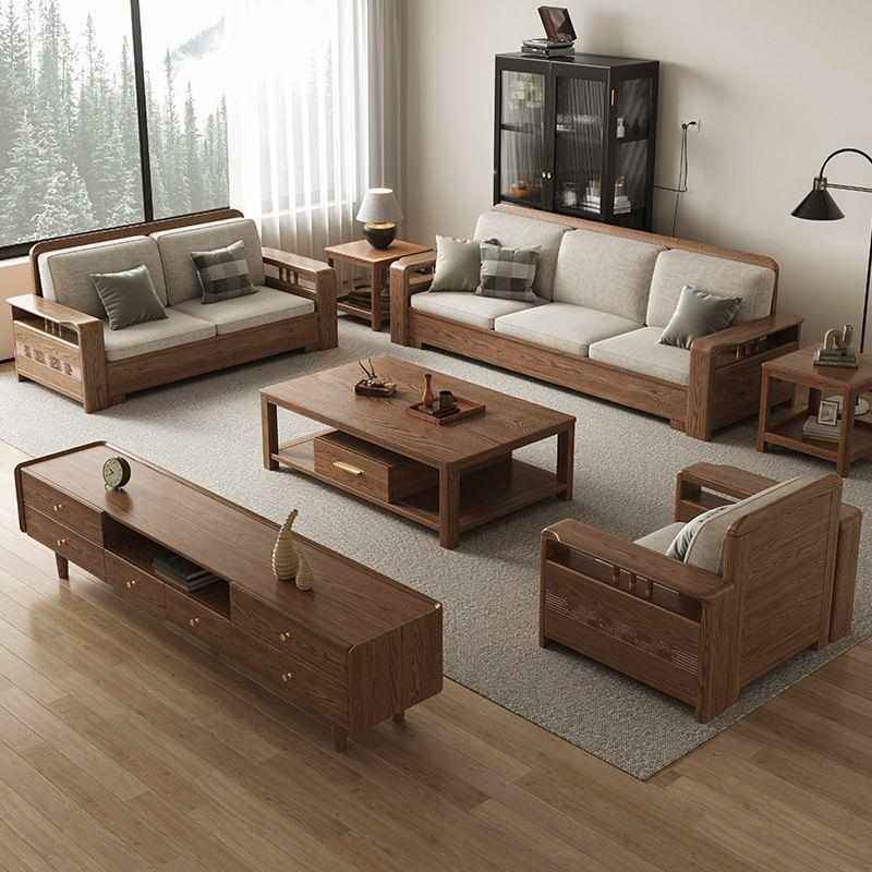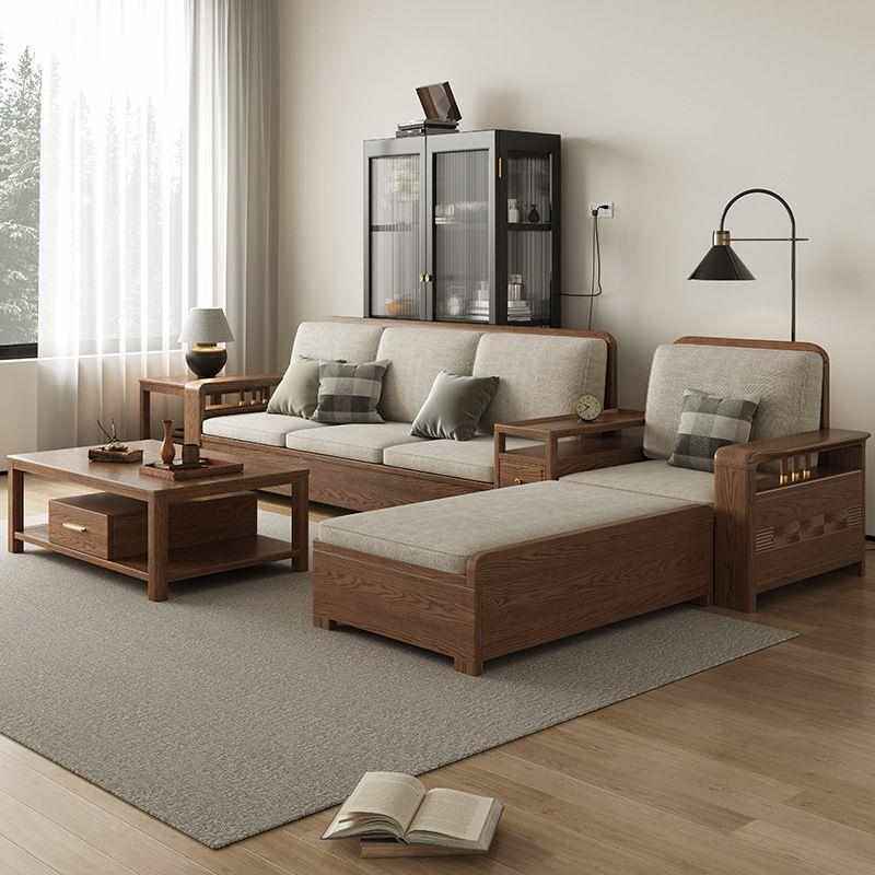 经典白蜡木实木沙发北欧现代简约冬夏两用小户型客厅组合贵妃沙发
