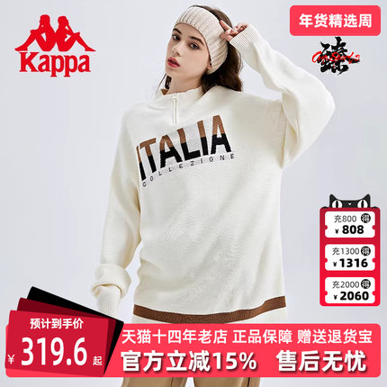 Kappa卡帕男女套头衫秋冬新款半拉链毛衣提花针织防寒外套