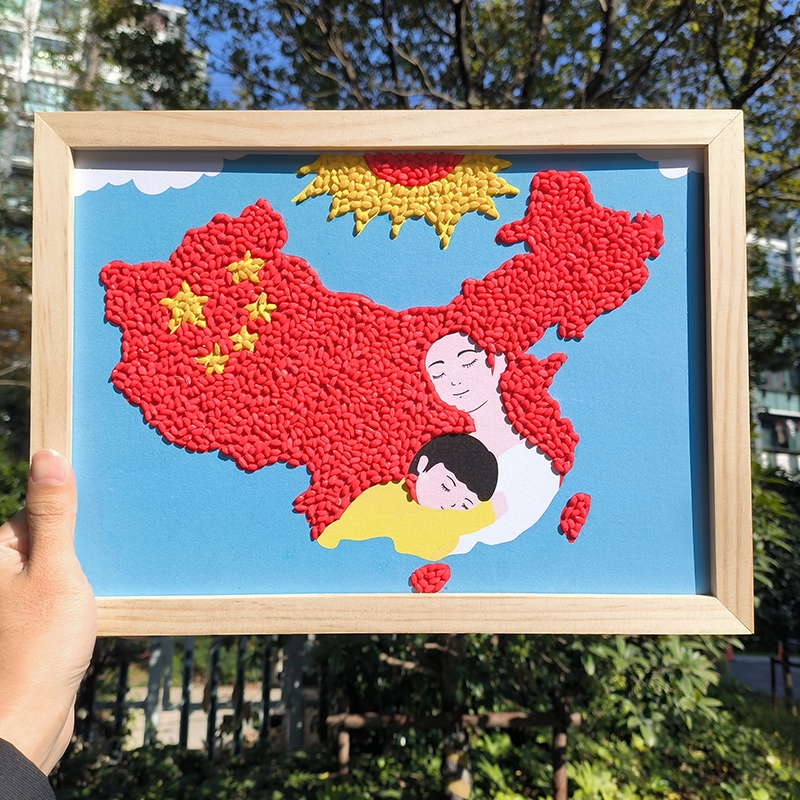 国庆节五谷杂粮手工DIY材料包儿童种豆子粘贴画版图中国地图活动