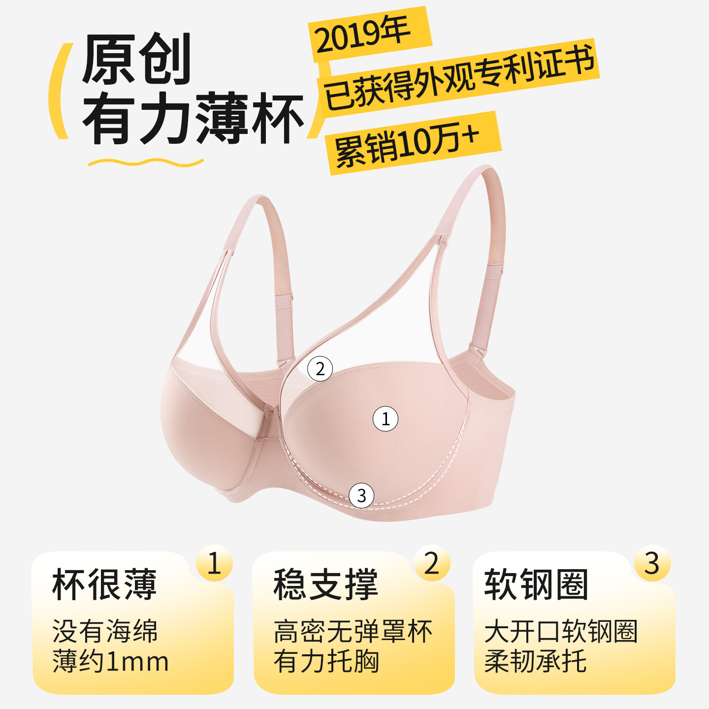桑扶兰大胸内衣无痕大胸显小文胸内衣女防下垂防凸点光面薄款透气