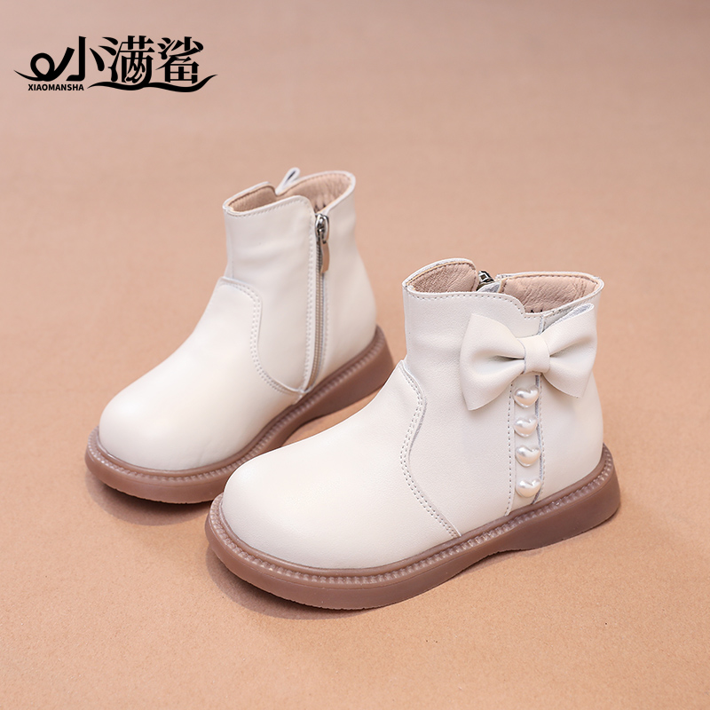 小满鲨 女童真皮洋气短靴加绒秋冬新款 儿童皮靴女宝宝软底小靴子