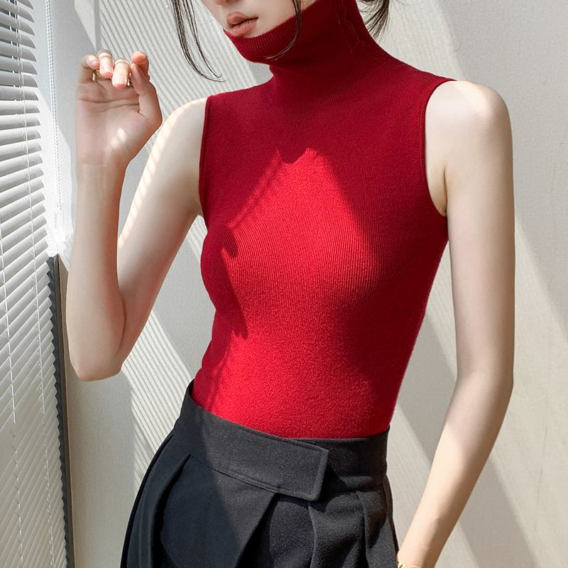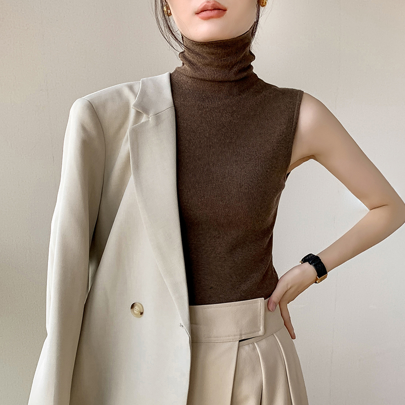 歌倍尚高领无袖羊毛针织背心女2025秋季新款修身纯色简约内搭上衣
