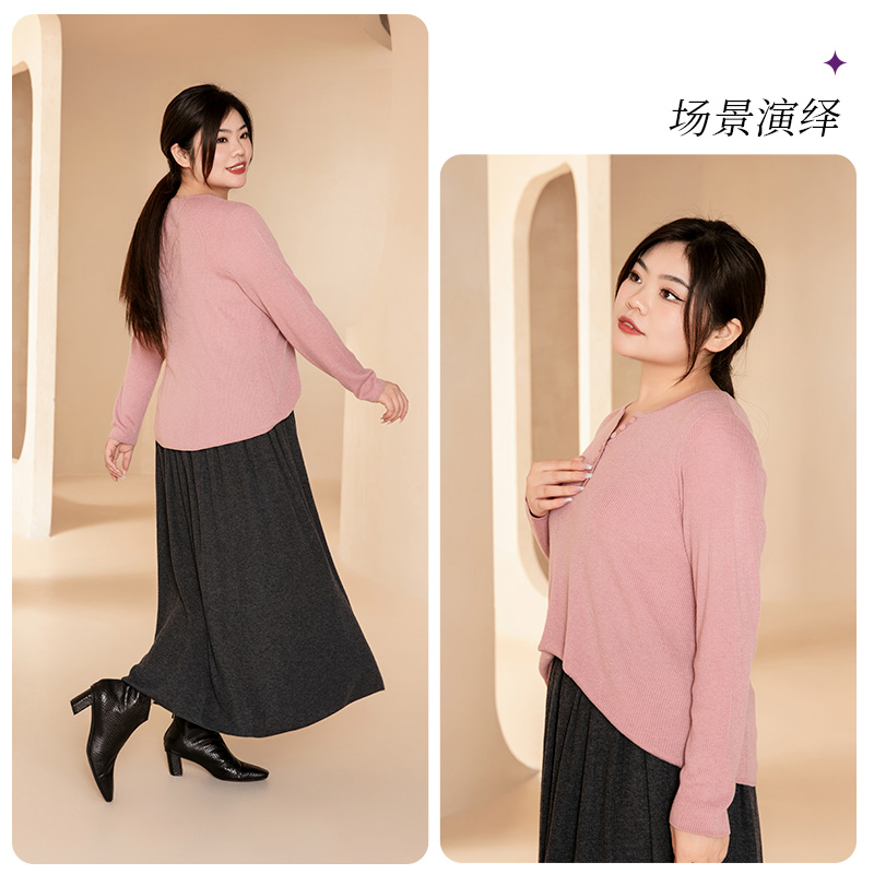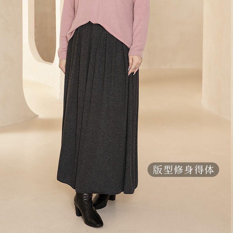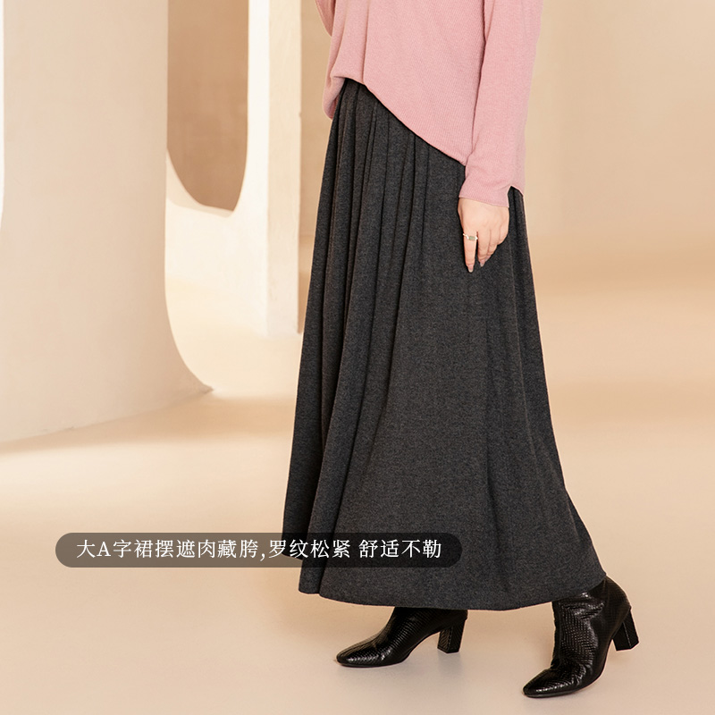 美丽客栈褶间缠绵半身裙 秋松紧腰大码女装宽松遮胯优雅伞状A字裙