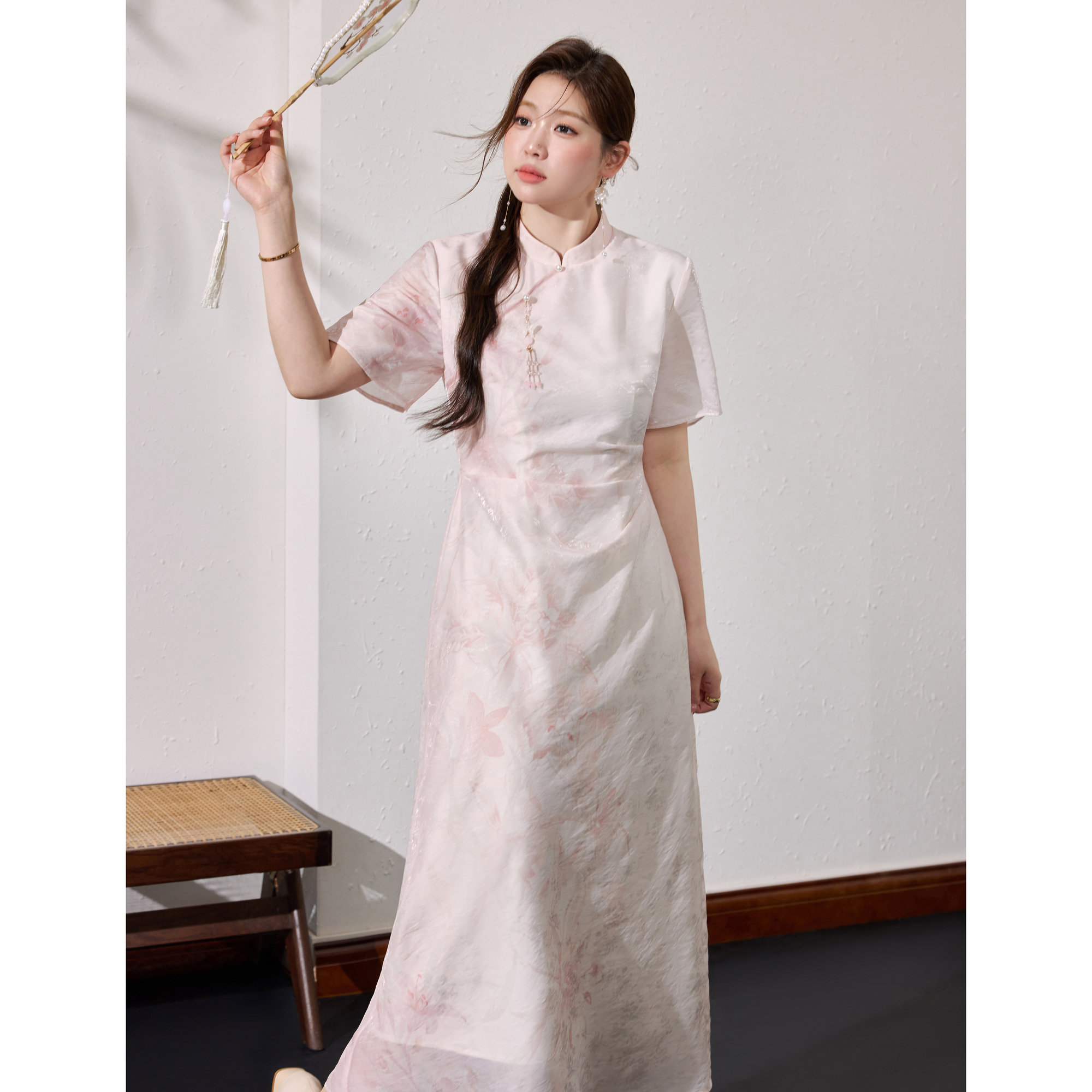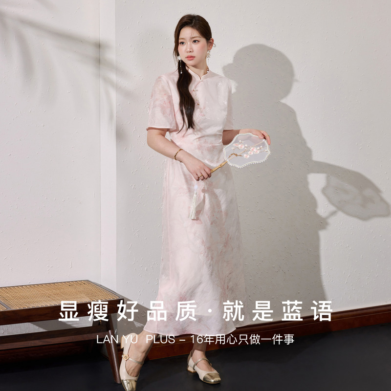 蓝语大码女装 原创 【暗香疏影】新中式国风印花旗袍连衣裙夏新款