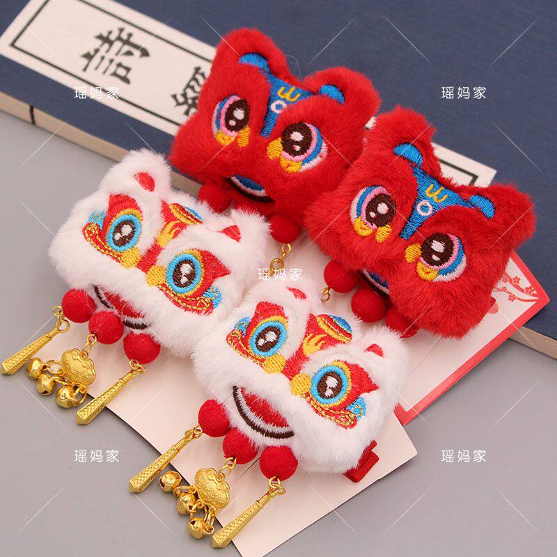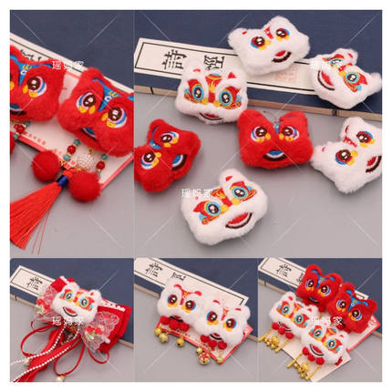 中国风填充棉刺绣毛绒醒狮头布艺配件diy发饰胸针蝴蝶结发夹材料