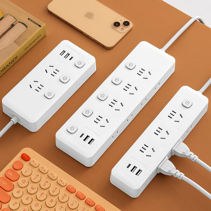 多功能插座usb插排插线板多孔面板接线板拖线板带线独立开关家用