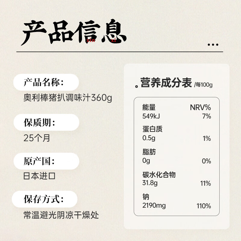 日本进口奥利棒猪排汁360g