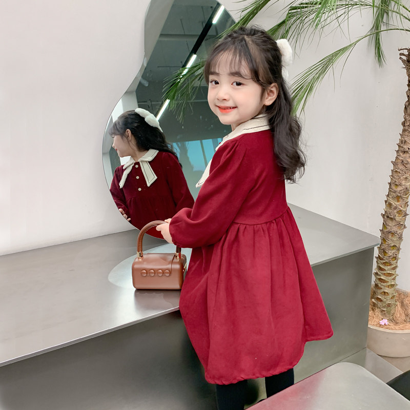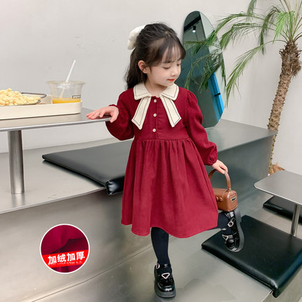 女童秋冬加绒连衣裙2025新款儿童新年衣服小女孩公主裙冬装拜年服