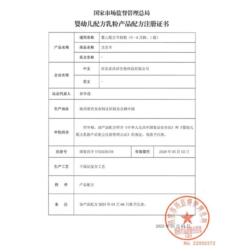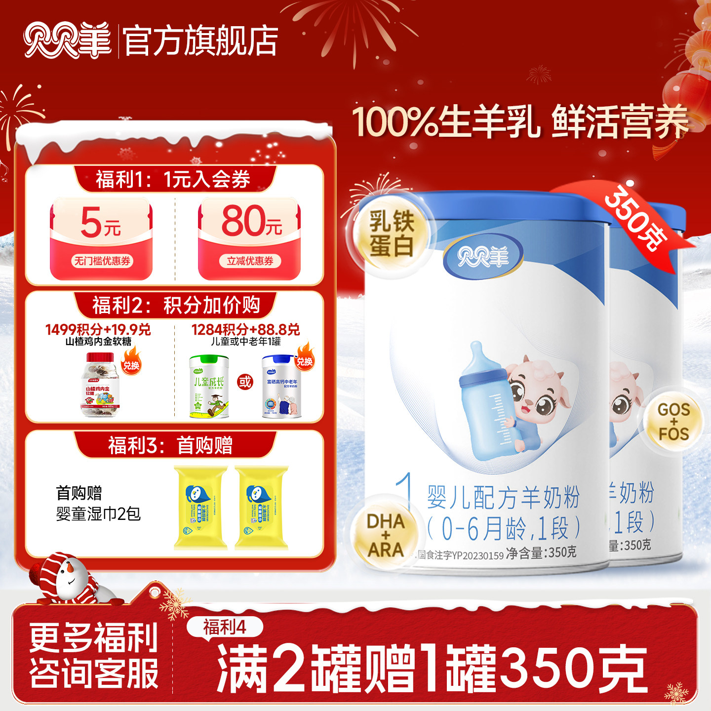 贝贝羊羊奶粉1段0-6月350g含乳铁蛋白营养新国标官方正品1罐装