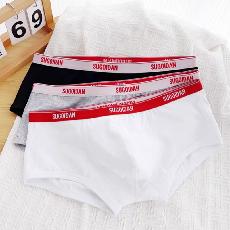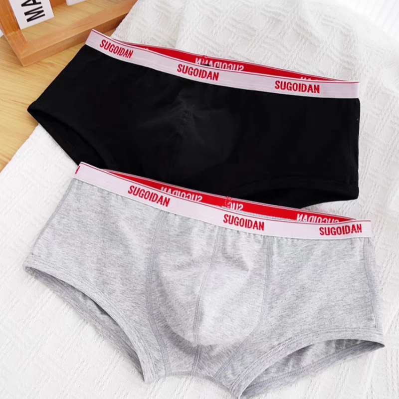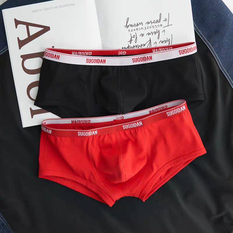 纯棉男士内裤新款夏季男生低腰平角红色简约U凸舒适男款四角裤衩