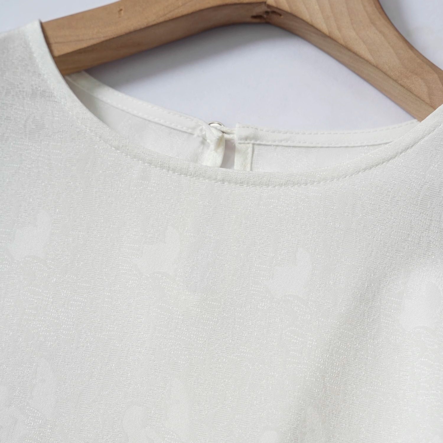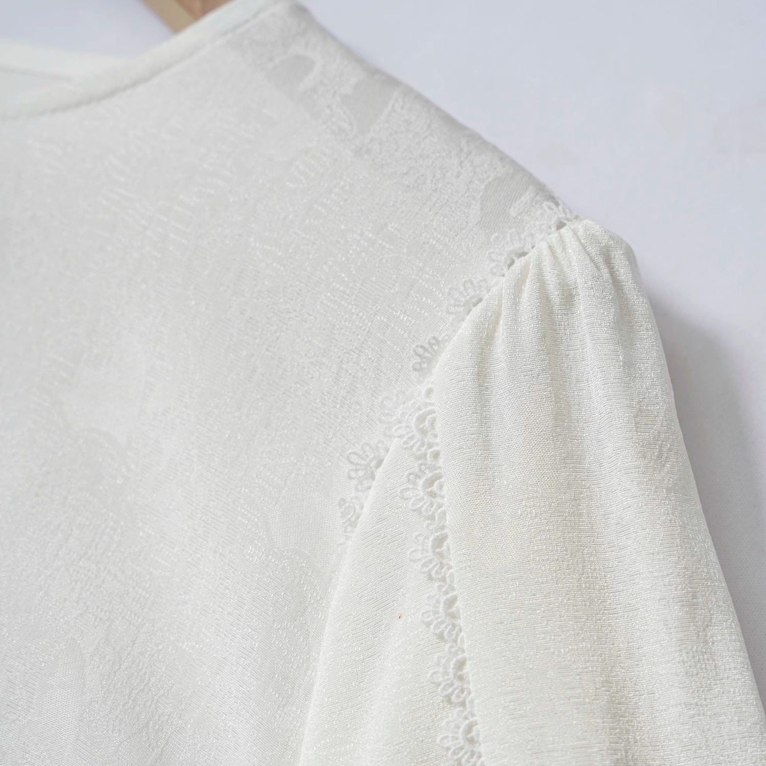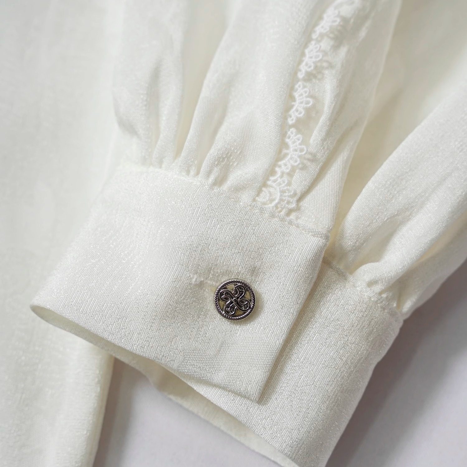 2024秋新款法式复古上衣桑蚕丝圆领设计感衬衣女米白色泡泡袖衬衫