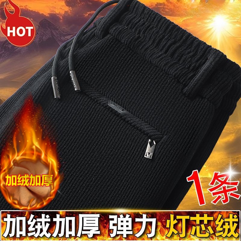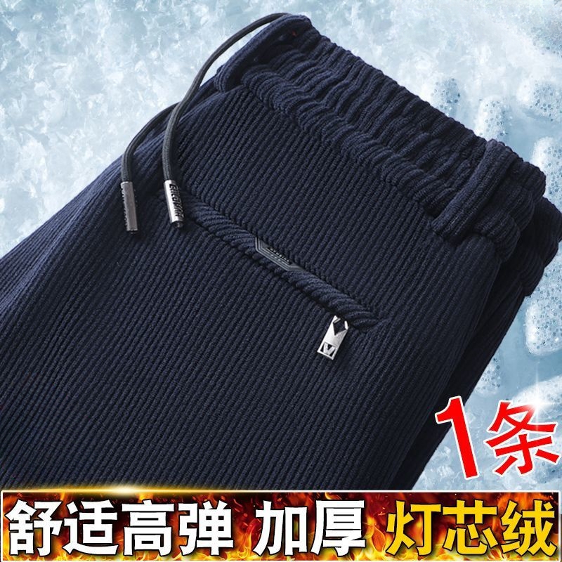 休闲运动裤男秋冬季韩版潮流宽松商务裤子加厚加绒保暖灯芯绒卫裤