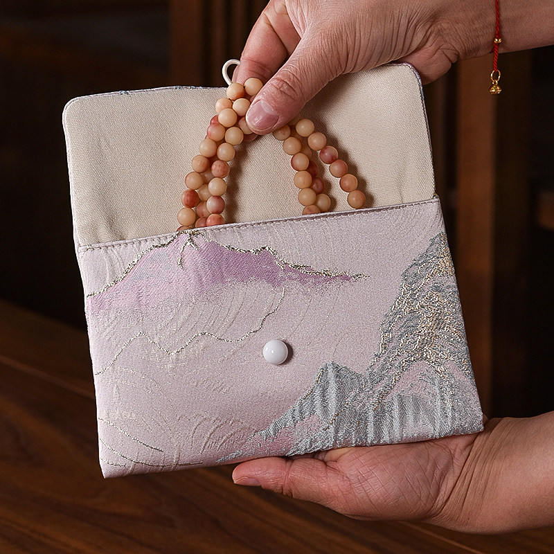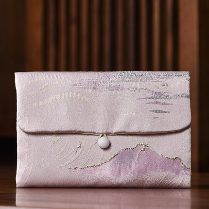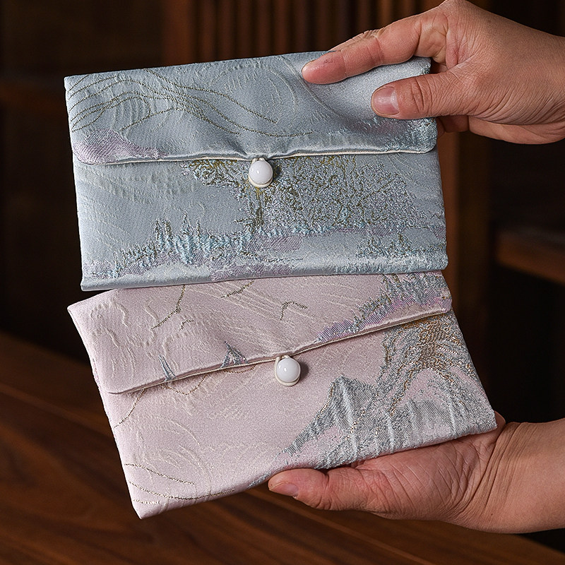 大号首饰袋刺绣织锦缎礼品布包和风文玩袋饰品袋翻盖布艺包双层