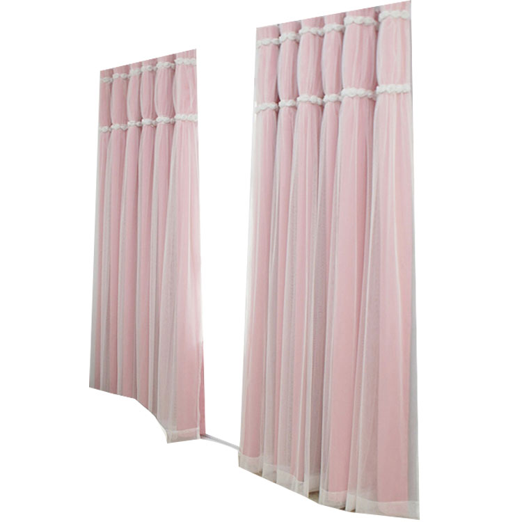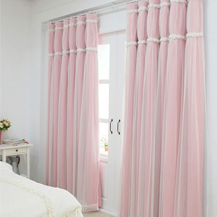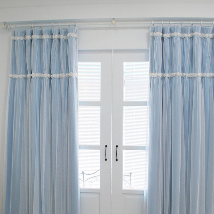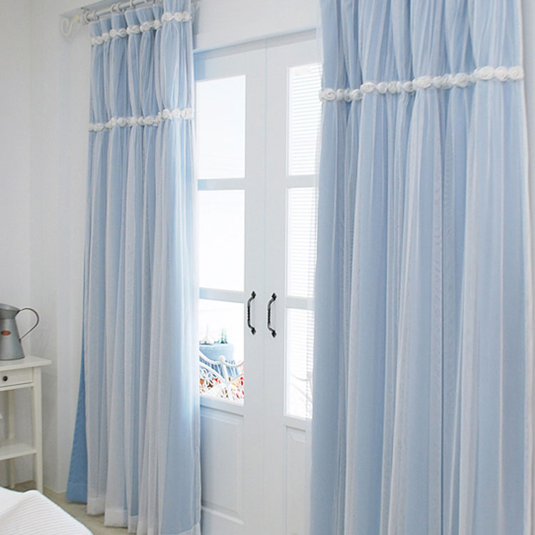韩式窗帘蓝色帘粉色公主风卧室客厅玫瑰花边加Q纱主播背景落地窗