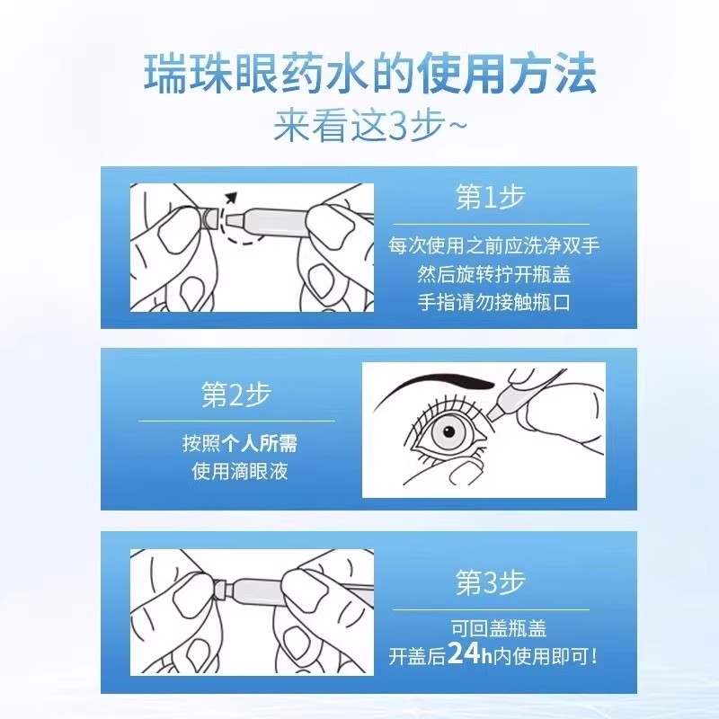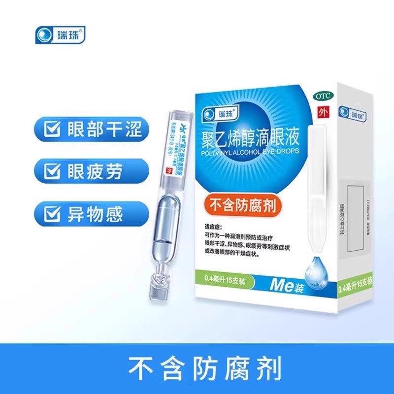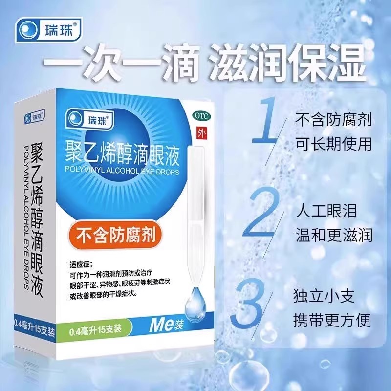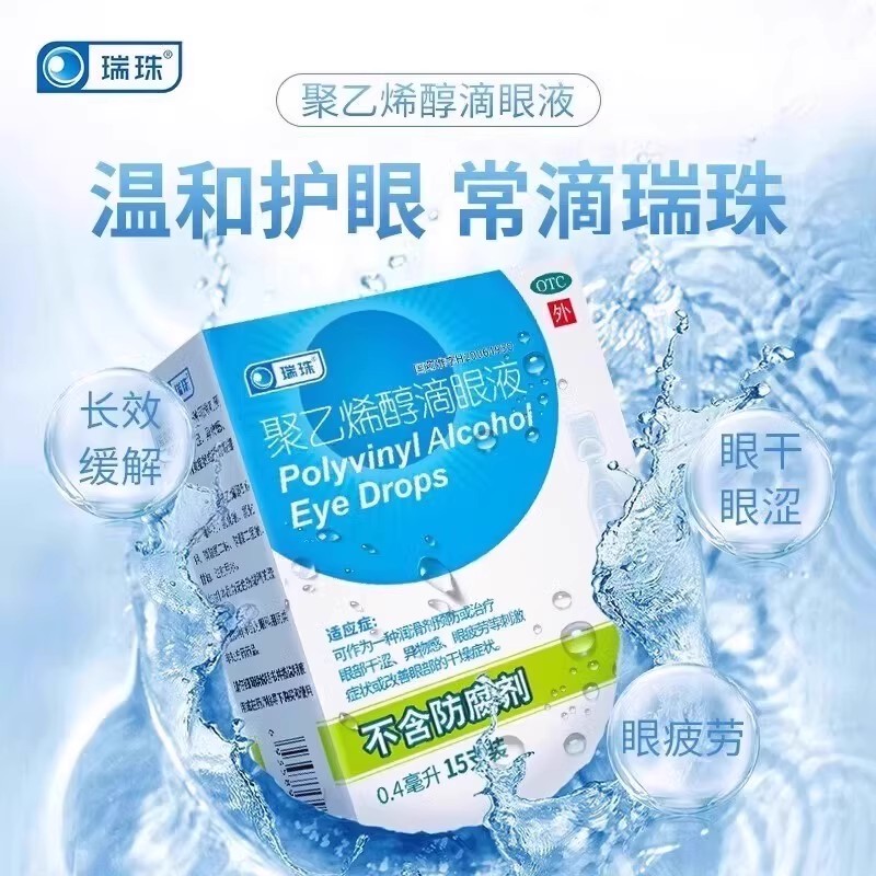 瑞珠聚乙烯醇滴眼液眼药水15支人工泪液润眼液不含防腐剂一次性