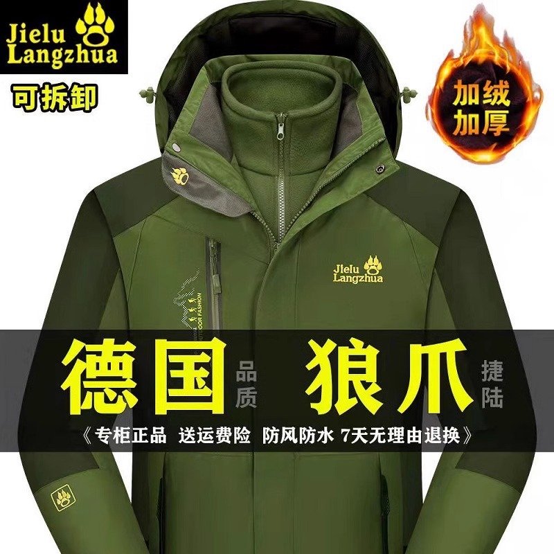 正品户外冲锋衣男女三合一可拆卸登山服秋冬加绒加厚大码防水外套