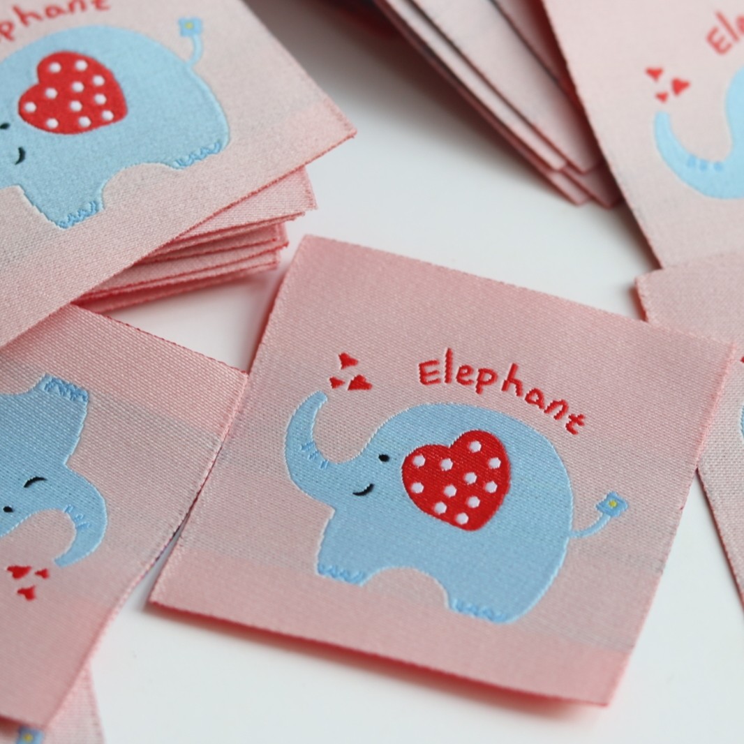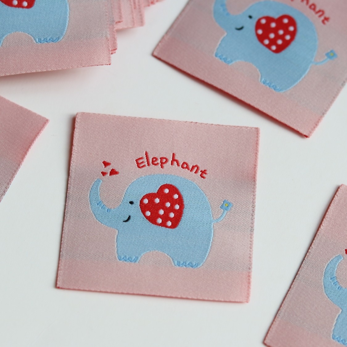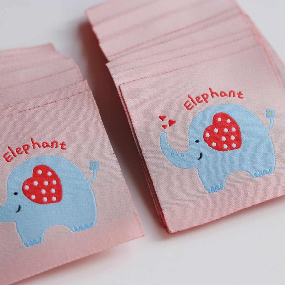 粉蓝小象可爱卡通布标织唛标商标服装辅料领标设计定制织标现货
