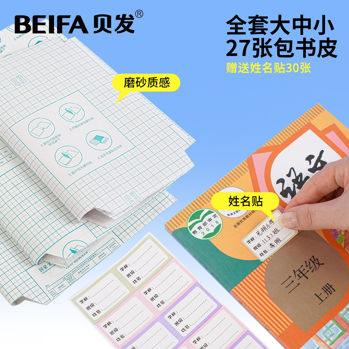 贝发自粘磨砂加厚书皮书套 16K文具包书皮纸小学生一二三年级包书膜一体化书壳全套塑料防水课本书膜