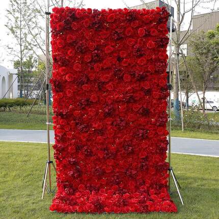 布底仿真玫瑰花墙婚庆婚礼布置红色背景墙排橱窗装饰植物墙花商场