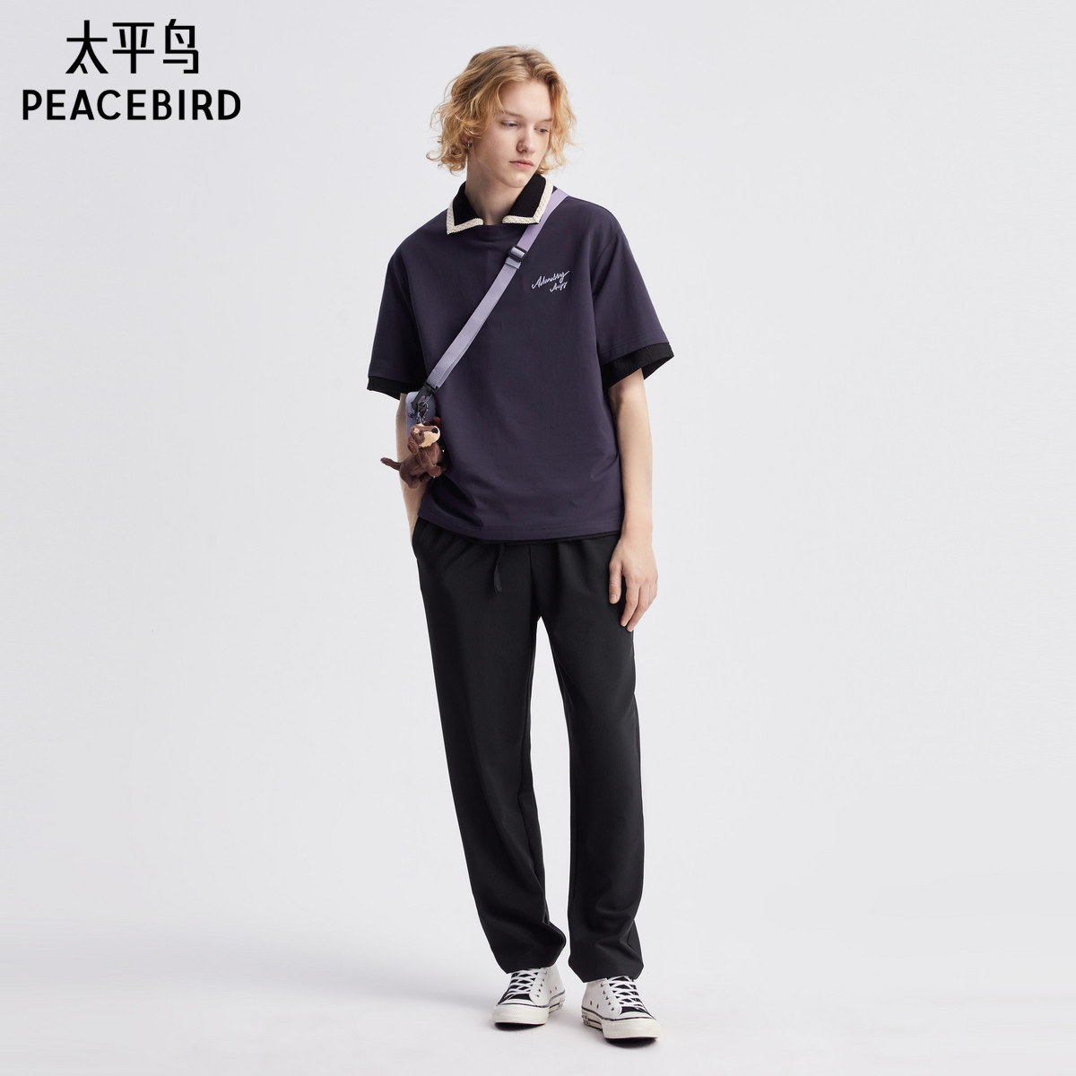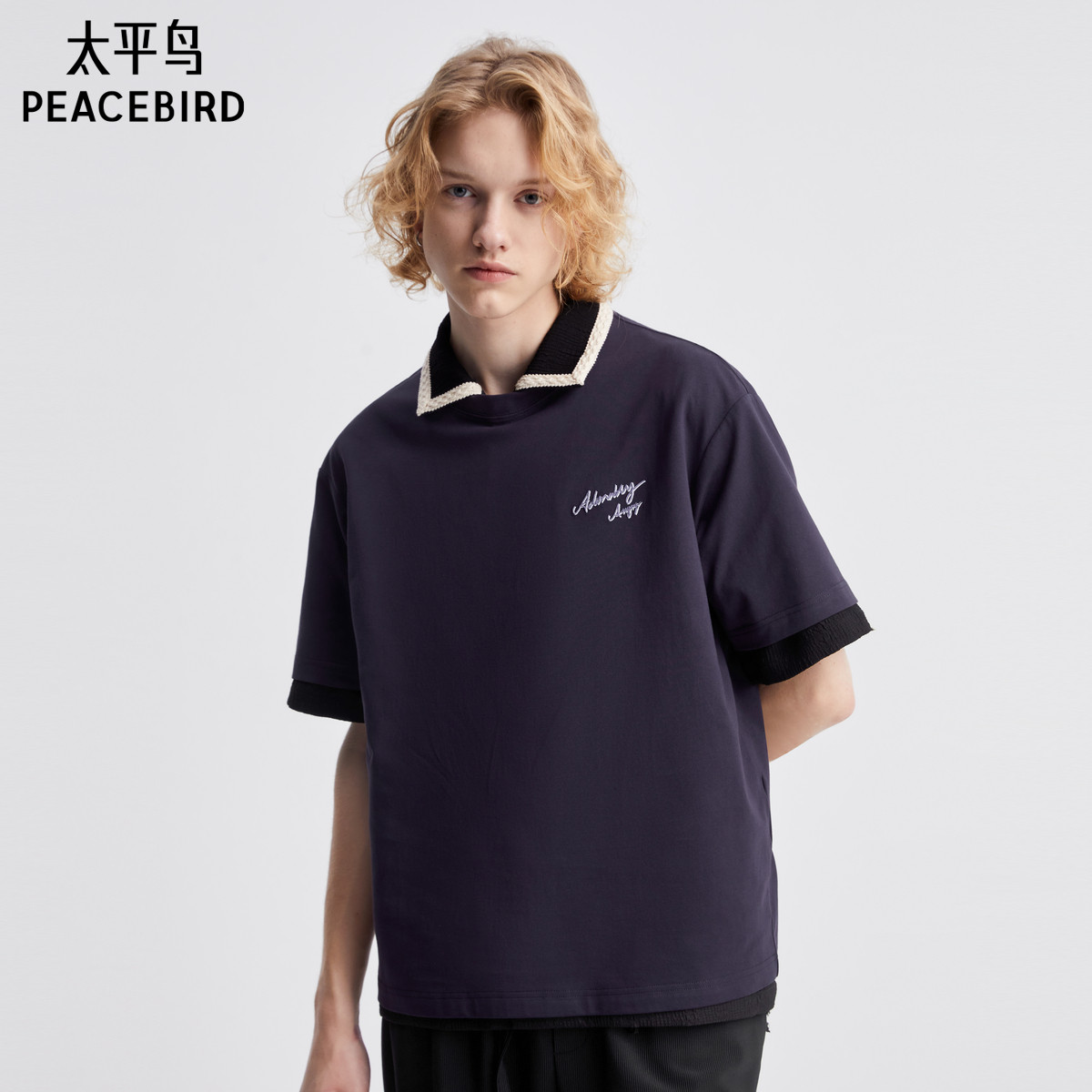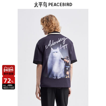 太平鸟男装 休闲T恤夏季潮流短袖T恤男宽松满印卡通打底衫潮