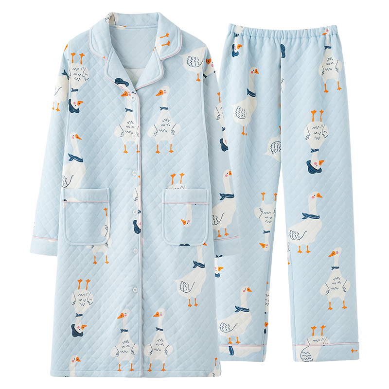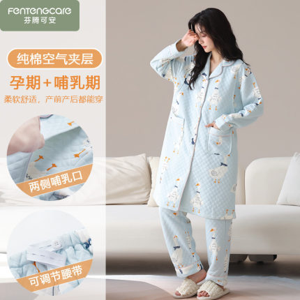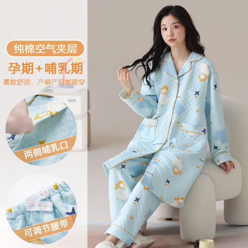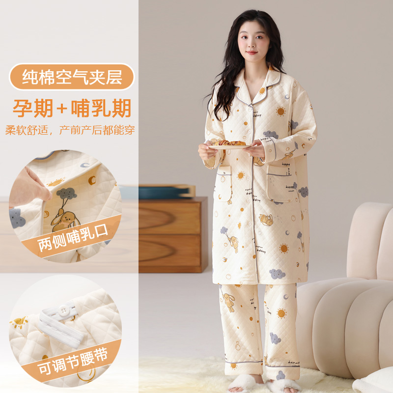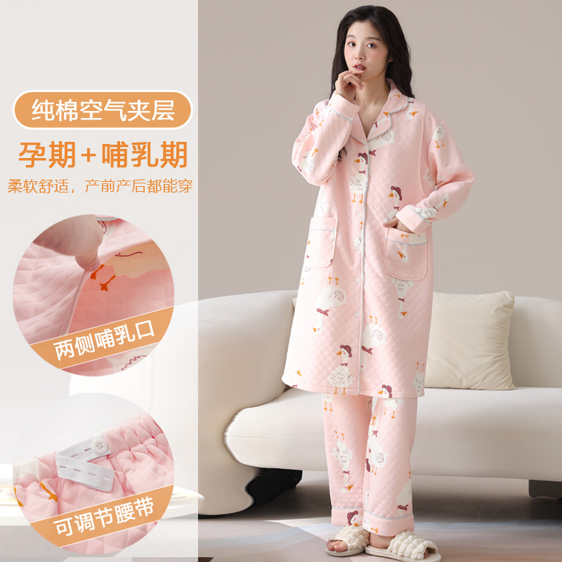 空气棉月子服睡衣女春秋冬季睡裙夹层纯棉哺乳产后长款待产裙加厚