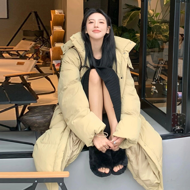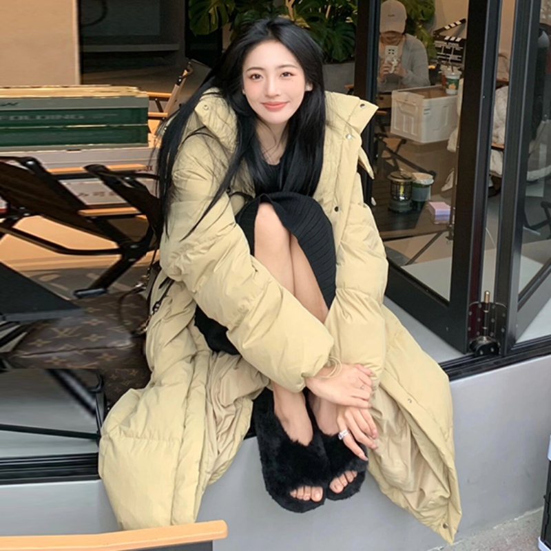 90白鸭绒超长款羽绒服外套