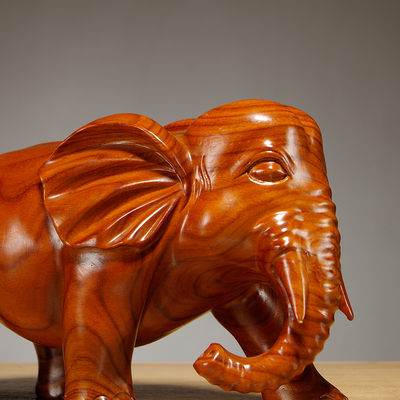 花梨木雕刻大象摆件大号一t对家居客厅办公装饰工艺品店铺开业送
