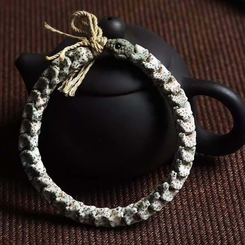 雕刻星月菩提手串蛇骨盘玩佛珠文玩石玉料星月菩提手串情人节礼物