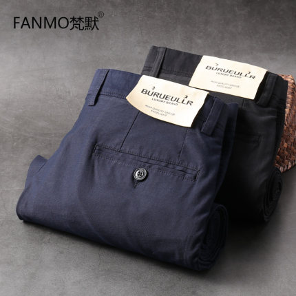 秋冬季男士休闲裤厚款斜纹弹力顺滑透气舒适棉直筒商务休闲长裤男
