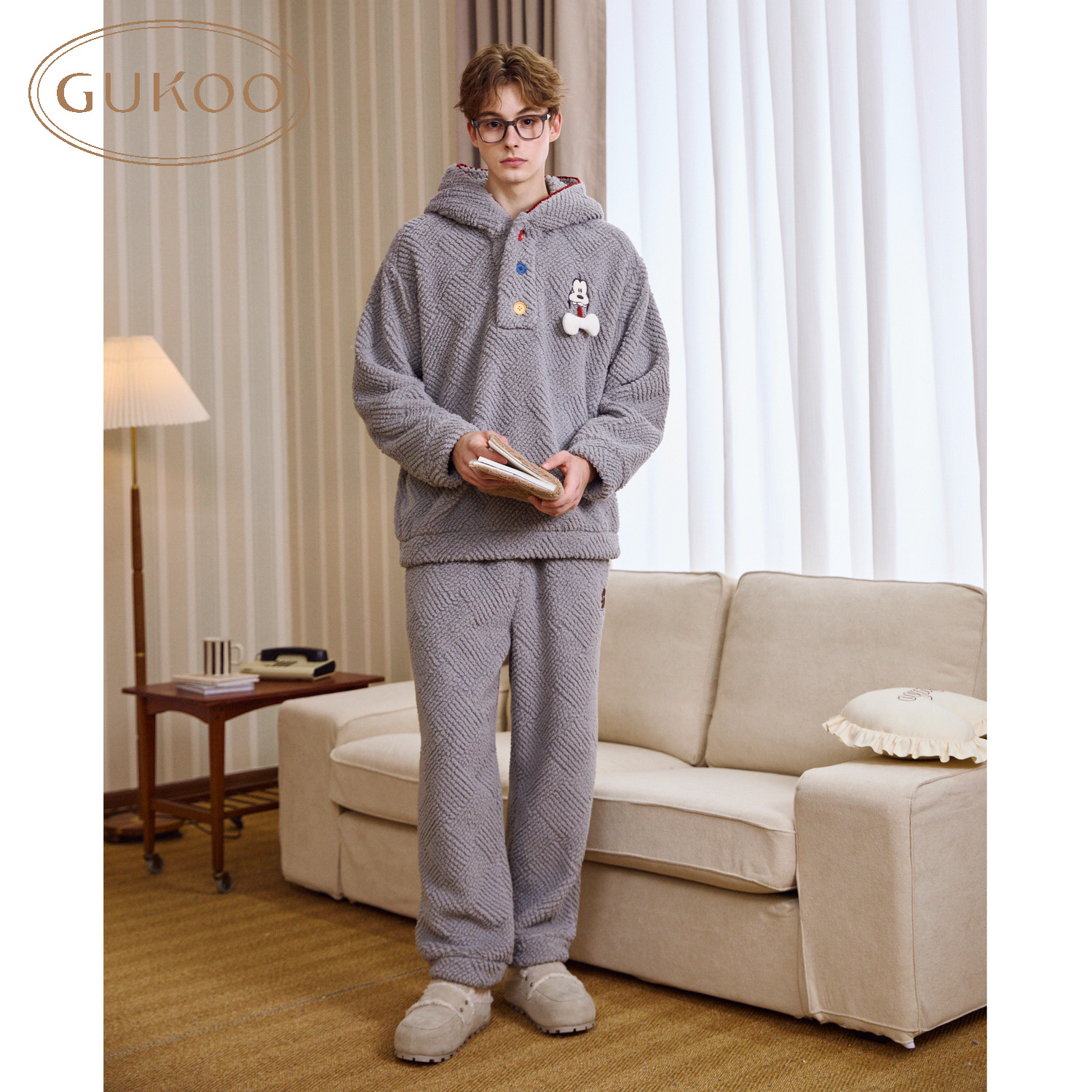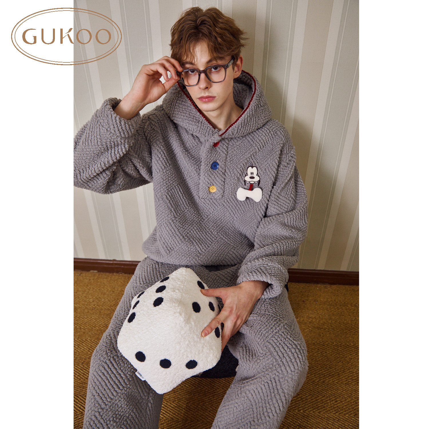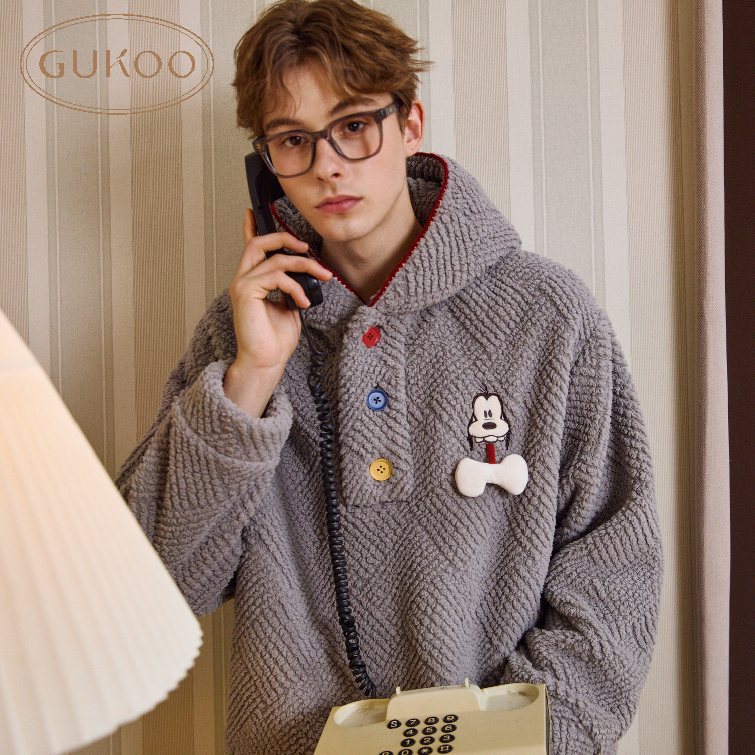 Gukoo/果壳男士睡衣冬季舒棉绒保暖新款迪士尼联名男家居服套装D