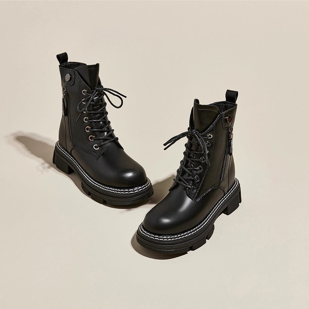 厚底7CM内增高加绒马丁靴女2026春夏新款英伦风中筒百搭显瘦短靴